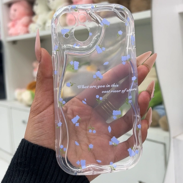 Add a touch of elegance to your phone with this beautiful floral clear case. Featuring a soft lavender background decorated with delicate blue blossoms, this case blends minimal aesthetics with everyday protection. Made from flexible, shock-absorbing TPU material, it offers a snug fit while keeping your phone slim and lightweight.