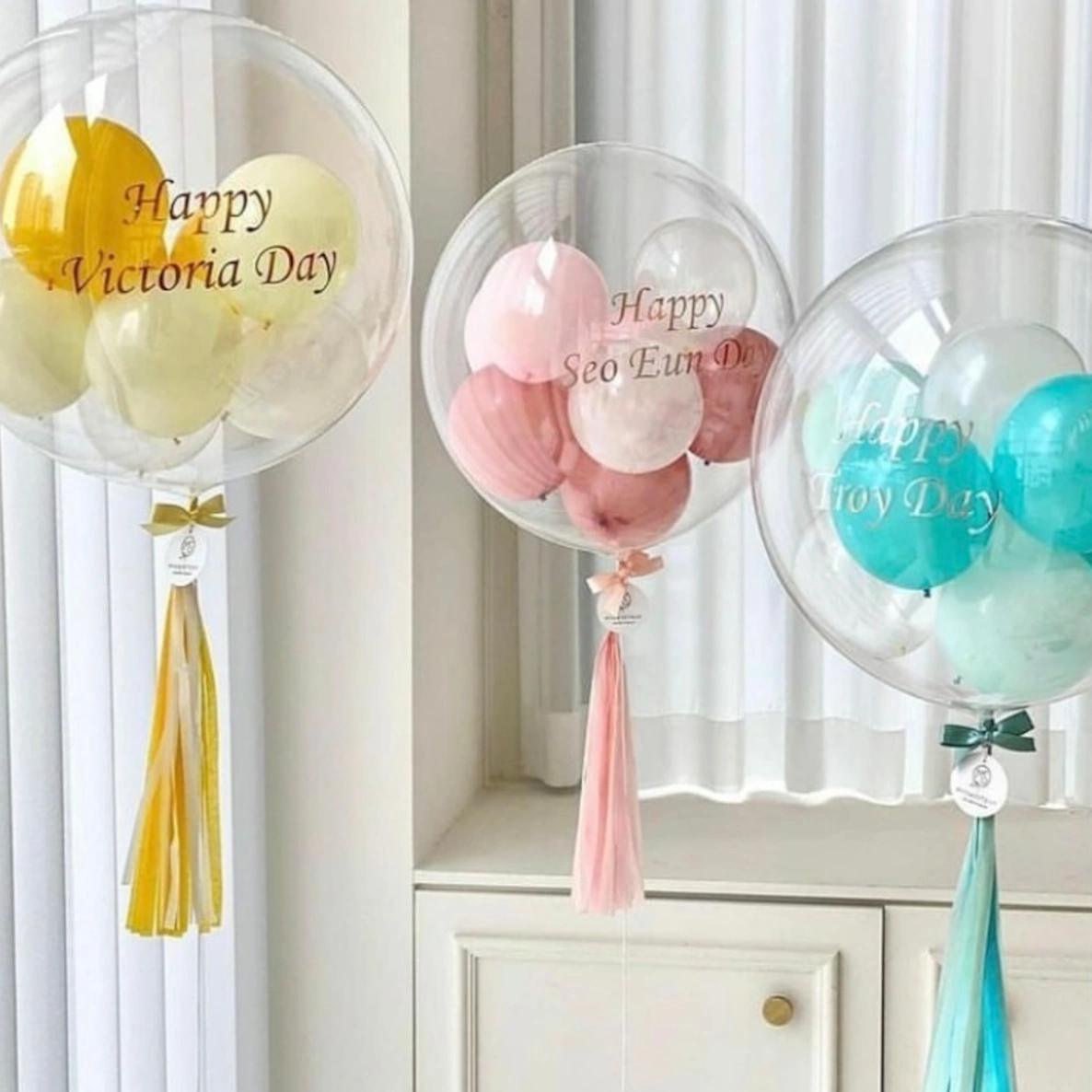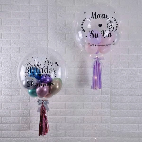 BOBO TRANSPARENT BALLOONS OF SIZE- 18 INCH. CAN BE CUSTOMIZED ACCORDING TO YOUR PREFERRED BALLOONS AND TEXT..