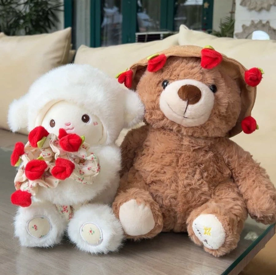 Bring warmth and cuteness to your space with these adorable plush stuffed toys. Featuring a charming teddy bear and a fluffy bunny design, these soft toys are dressed with cute accessories and decorative details that make them perfect for cuddling or display. Their sweet expressions and cozy look add a lovely touch to bedrooms, nurseries, or living spaces.