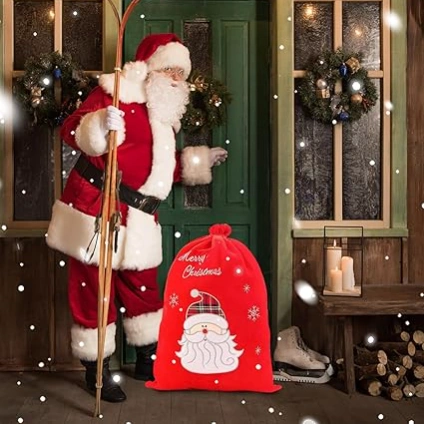 Easy to Use: Drawstring bag type that can be easily wrapped, simply pull the ribbon string through the hole at the top of the bag. This is a must-have item for cosplay Santa to brighten up the Christmas. A great surprise for family and friends