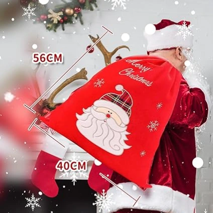 Size (H x W): 22.4 x 15.7 inches (57 x 4Santa Claus has a super large gift bag so we made it a super large size. It can hold many Christmas gifts. With Santa Claus face, you will see a smile on your child!
