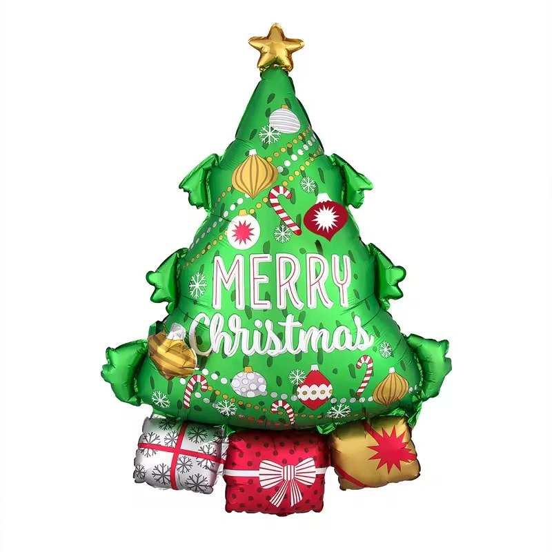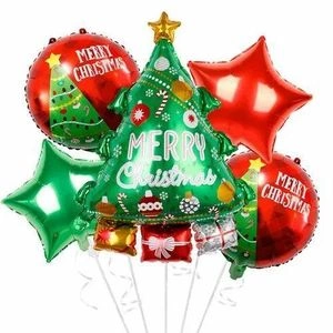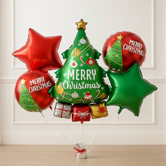 Comes with 4 additional balloons: 2 round “Merry Christmas” balloons and 2 star-shaped balloons (red & green).
