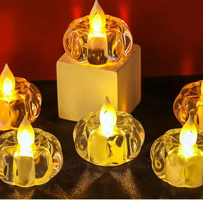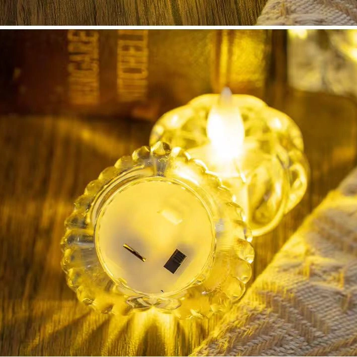 🕯️ Design: A crystal-style tea light with a sculpted glass body and a flame-shaped LED at the center.