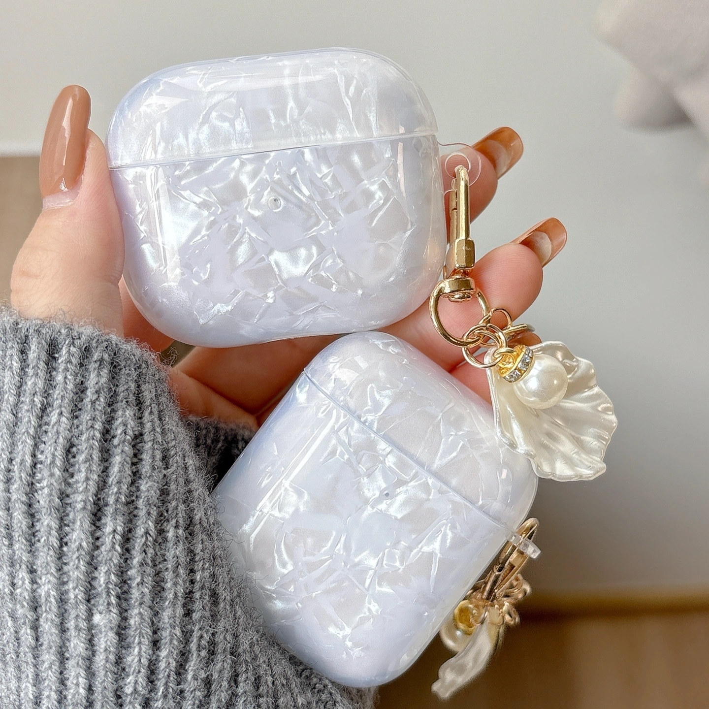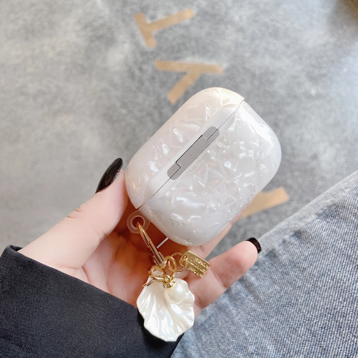 Bling marble design with Shell Pearl keychain, the airpods accessories specifically designed for girls and womens.