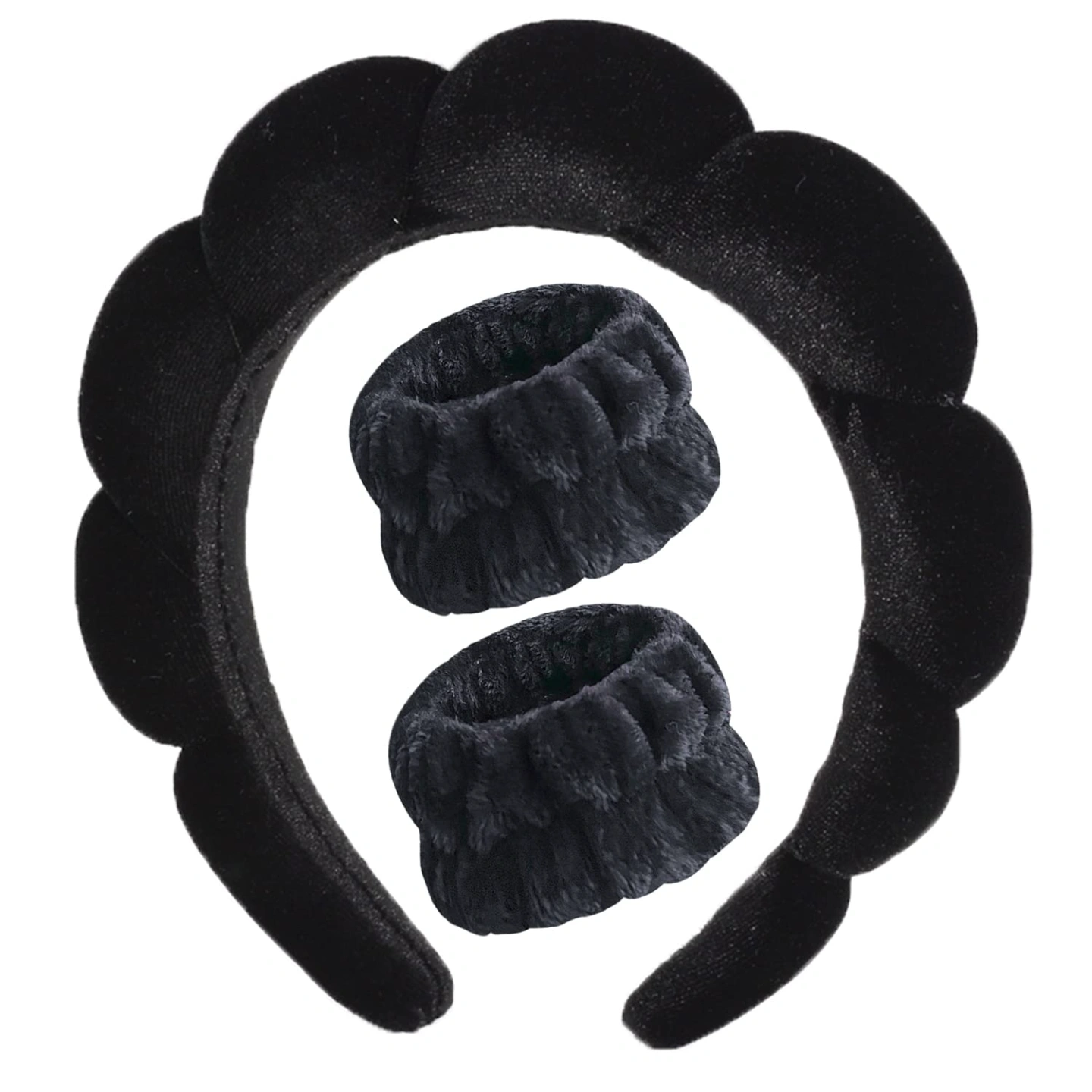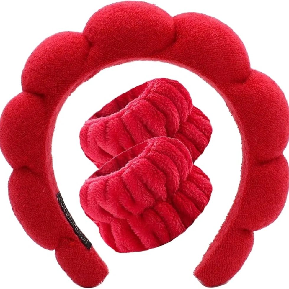 Soft and Absorbent: Our spa headband use sponge lining and the terry cloth covering the surface, our wristbands are made of coral fleece,has strong water absorption ,soft and comfortable.