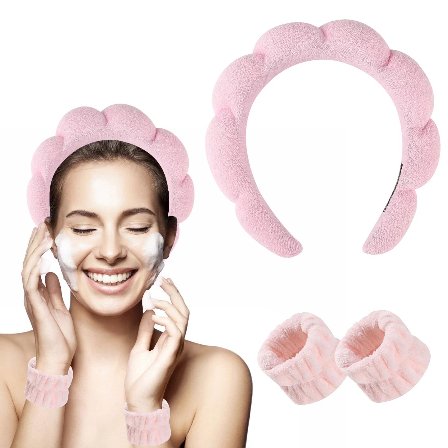 Fit Size: Our makeup headband size is 7.08 x 6.69inch, face wash wristbands size is 2.36x3.93inch, most people can wear them.