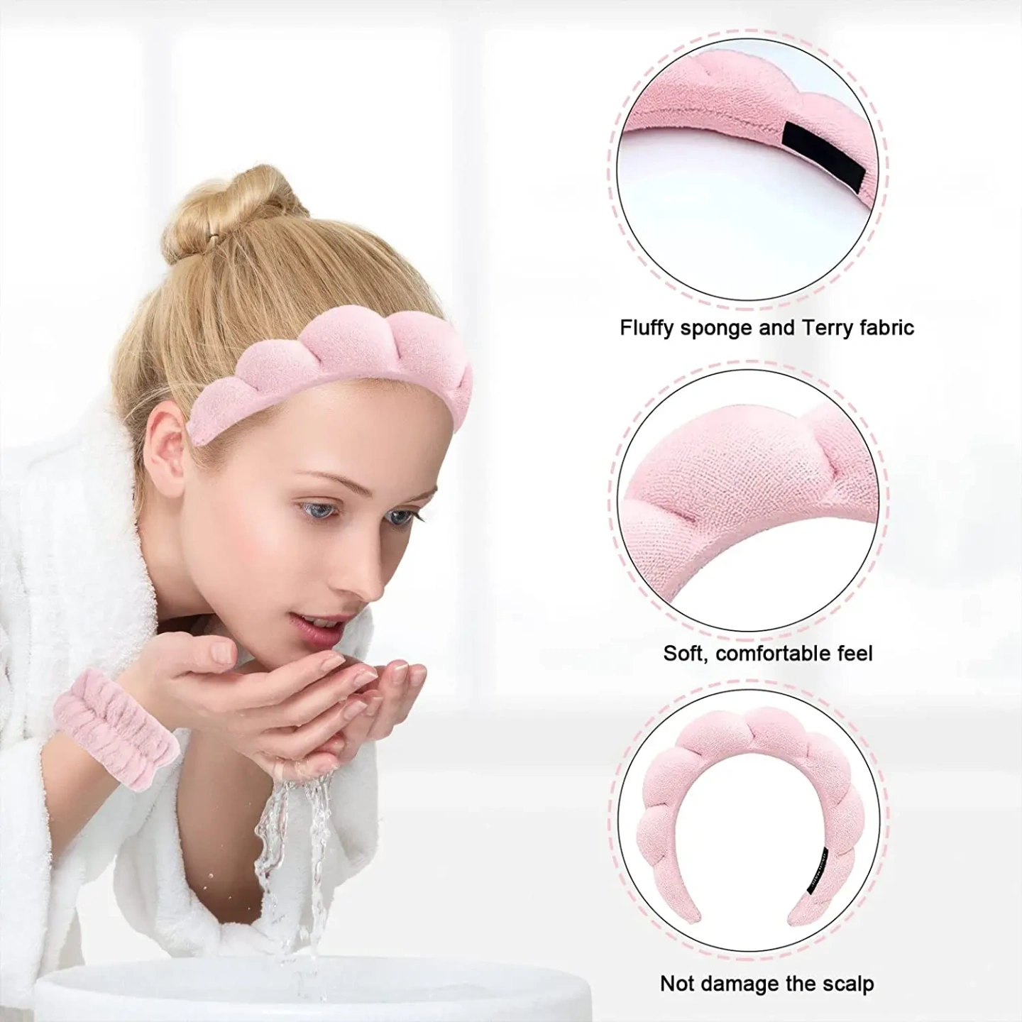 4. These makeup headbands and wrist spa washbands set can be applied on most daily occasions, such as washing face, doing makeup, doing house work, doing yoga, makeup remover, skin care and more, breathable and serviceable for reuse, will not do harm to your skin.