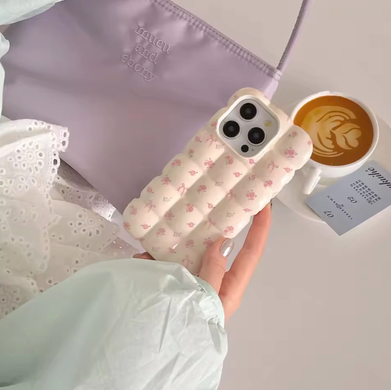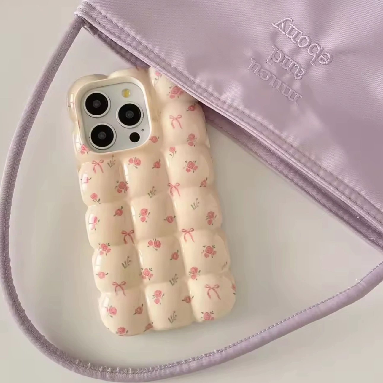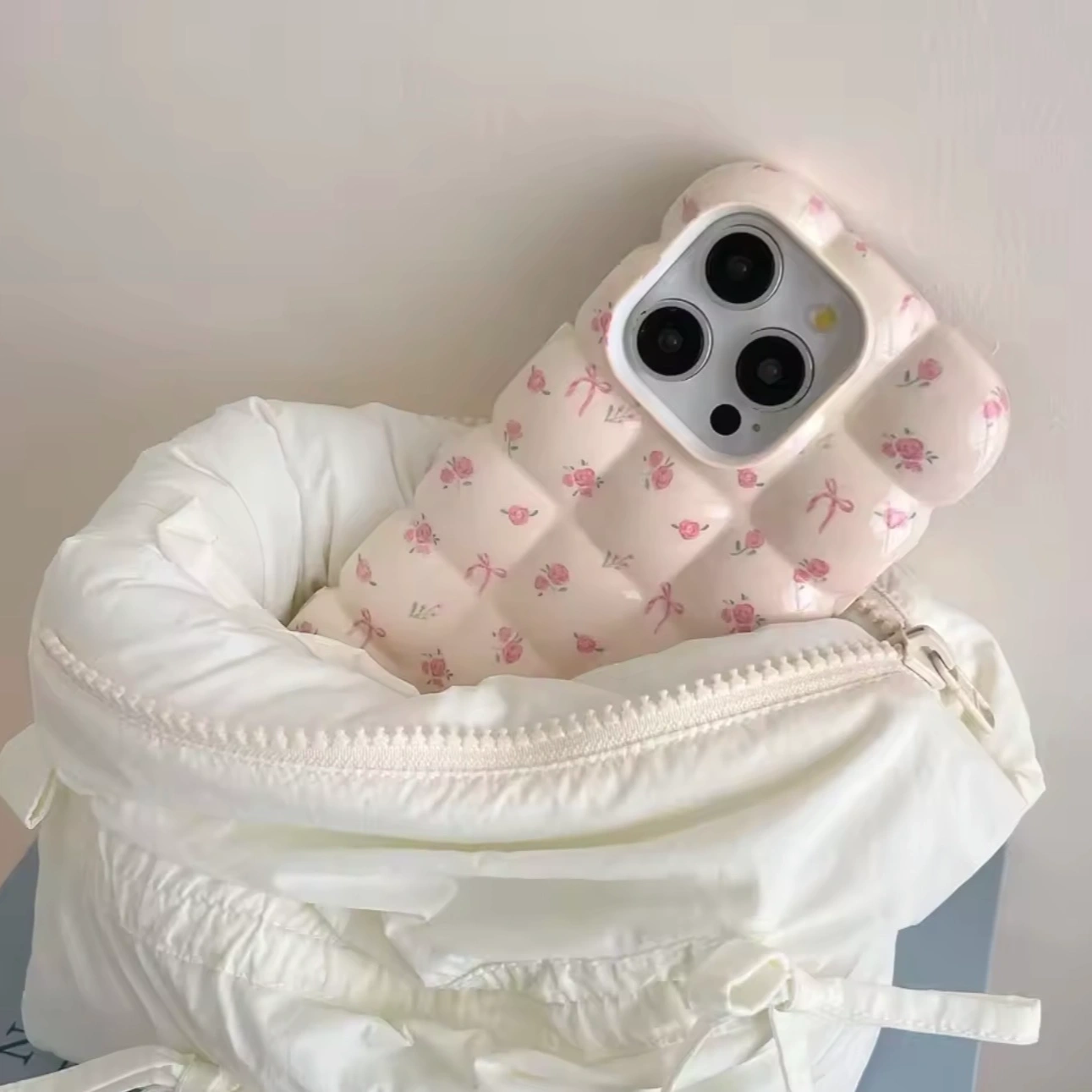 Puffy quilted design with a soft, cushion-like 3D texture