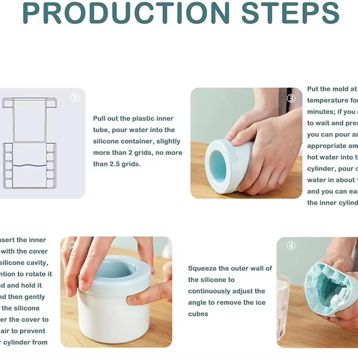 Personalized Ice Bucket Machine: Very practical and lightweight personalized silicone mini ice bucket. Pour half the water into the cup when making, only takes 3 seconds to complete the water injection, saving time. Then insert it into the silicone cup, gently press the bottom of the lid to expel the air, and put it in the refrigerator for a few hours.