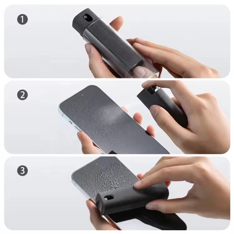 2 in 1 Design: the electronic screen cleaner integrates spray and wipe in one; This 2 in 1 design allows you to use it conveniently and quickly, no need to find another tool, saving time and effort