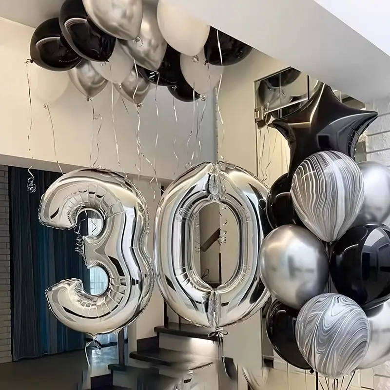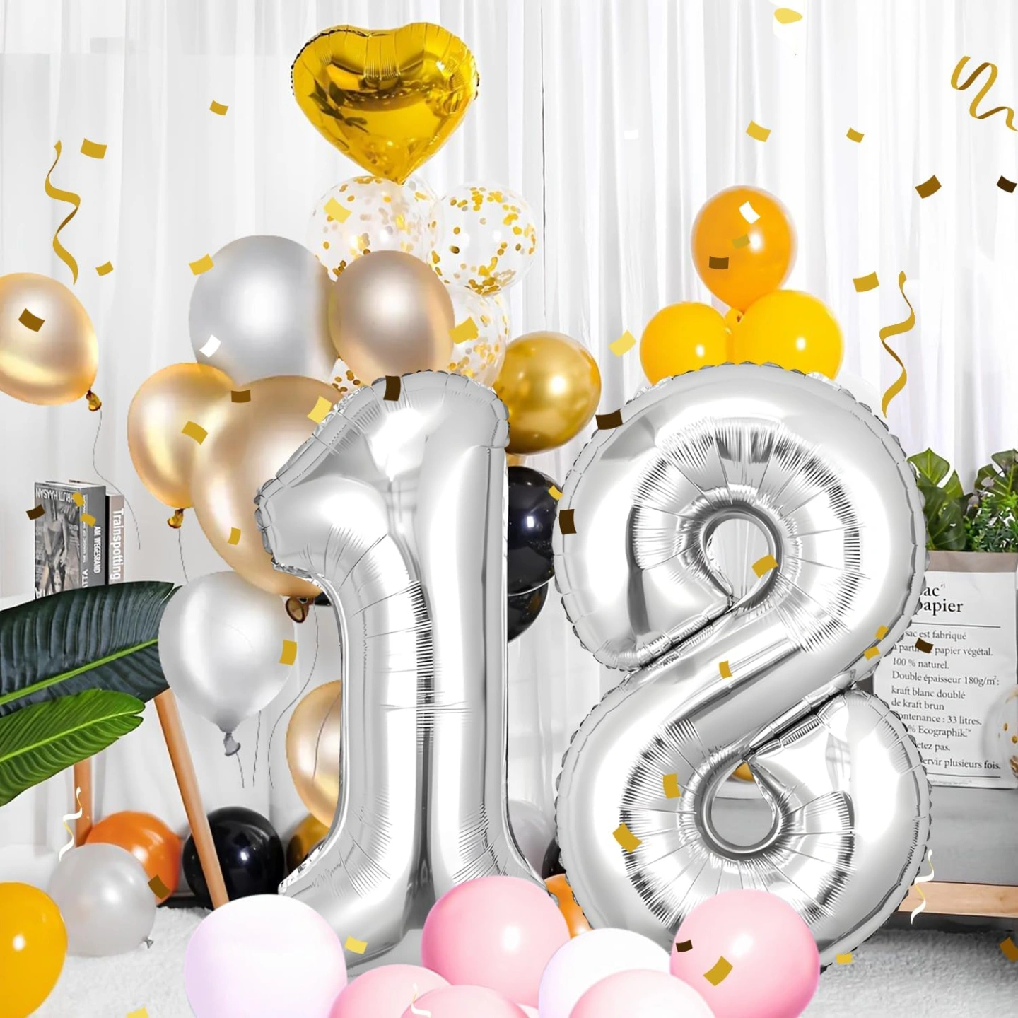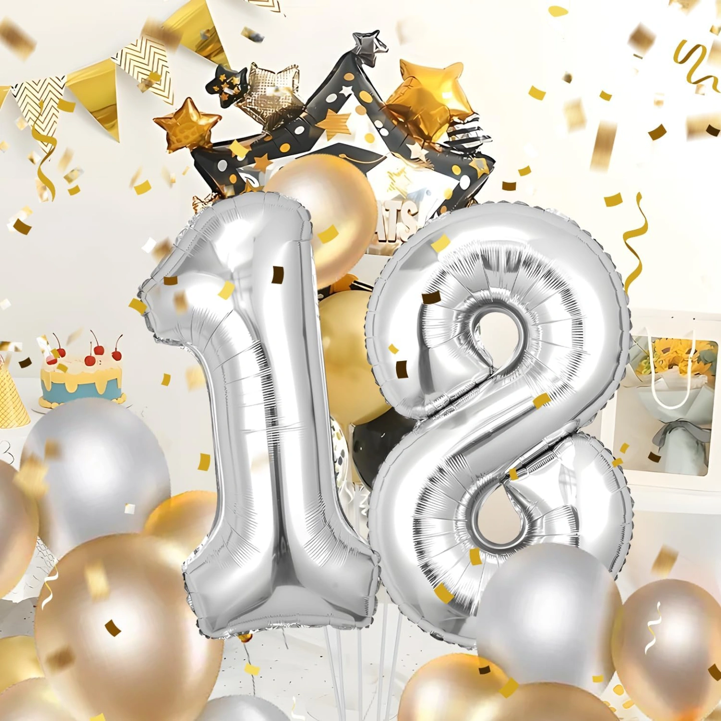 Silver Number Balloons: It is the perfect choice for your birthday party balloon decoration.